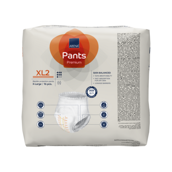 ABENA Pants on Premium-luokan kertakäyttöinen inkohousutuote, joita voidaan käyttää tavallisten alushousujen tapaan ja jonka imukykytasot kattavat monenlaiset tarpeet. Tuotteet on valmistettu hengittävästä ja erittäin pehmeästä materiaalista optimaalisen mukavuuden varmistamiseksi. Vyötärönauhan lycra-lankojen ansiosta istuvuus on luotettava ja napakka, joten tuote sopii ihanteellisesti aktiiviseen elämäntyyliin. Imukykyisen ytimen Top-Dry-teknologia varmistaa ihon hyvinvoinnin pitämällä altistuneen ihoalueen miellyttävän kuivana useamman virtsaamiskerran jälkeenkin. Pituus- ja pystysuuntaiset vuotosuojat sekä joustavat jalantiet takaavat yhdessä 360 asteen suojan vuotoja vastaan. Nämä ominaisuudet suojaavat yhdessä ihoa ja ylläpitävät ihon luonnollista pH-tasapainoa. Hajunsulkujärjestelmä minimoi epämiellyttävät hajut. Kosteusindikaattori täyttöasteikolla (ei sisälly kokoon XS1) auttaa käyttäjää ja hoitajaa valitsemaan tuotteen, jolla on oikea imukyky.