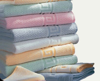 Laitospesun kestävä pastellisävyinen froteepyyhe.